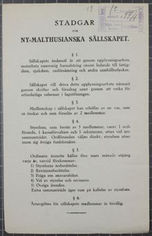 Ny-Malthusianska Sällskapet var inspirerat av den brittiske nationalekonomen Thomas Robert Malthus (1766-1834). Enligt hans lära om befolkningsökning måste samhället ingripa och hejda fattiga människor från att skaffa fler barn än de själva kan försörja.