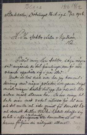 Herr Doktor! Skulle Ni möjligen kunna finna något uppslag till att bereda dessa främlingar en angenäm stund i en intelligent och intresserad familj här i staden, vore jag (å deras vägnar) mycket tacksam. Och som jag gjort denna framställning uteslutande i syfte att bereda dem en liten glädje, hoppas jag att Herr Doktor ej tycker illa vara, att jag tagit mig friheten skriva dessa rader.