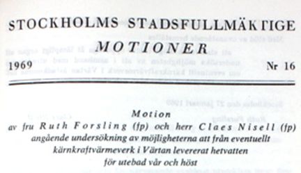 Motion angående undersökning av möjligheterna att från eventuellt kärnkraftvärmeverk i Värtan leverera hetvatten för utebad vår och höst - Stadsfullmäktige 1969
