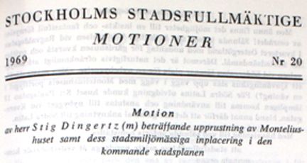 Motion beträffande upprustning av Monteliushuset samt dess stadsmiljömässiga inplacering i den kommande stadsplanen - Stadsfullmäktige 1969