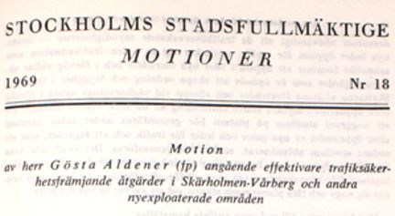 Motion angående effektivare trafiksäkerhetsfrämjande åtgärder i Skärholmen-Vårberg och andra nyexploaterade områden - Stadsfullmäktige 1969
