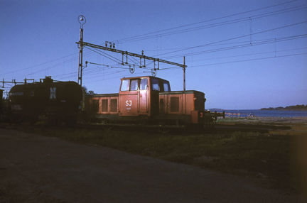 Nynäshamns station, vy mot sjön. Diesellok med tankvagn, AB Nynäs Petroleum