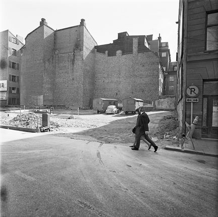Avrivna tomter i kv. Apeln. Tunnelgatan 15, 17. Nu Olof Palmes Gata