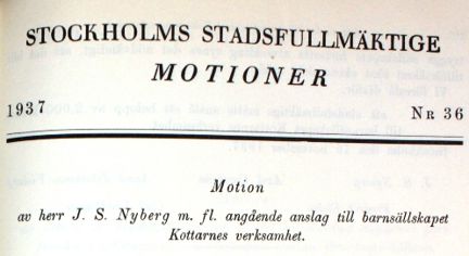 Motion angående anslag till barnsällskapet Kottarnes verksamhet - Stadsfullmäktige 1937