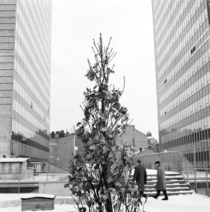 Gångbro över Sergelgatan mellan första och andra hötorgshusens terrasser. I fonden kv. Putten,