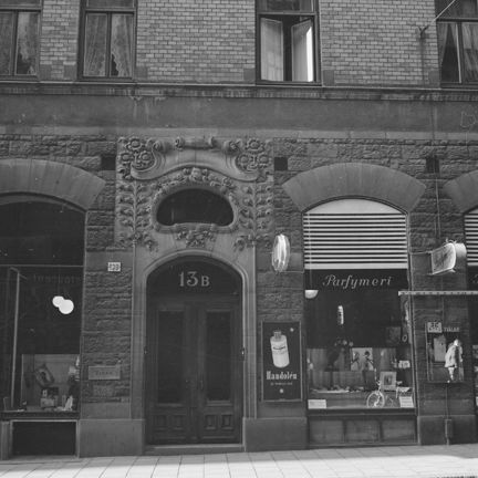 Portalen och del av fasaden till Grev Turegatan 13 B