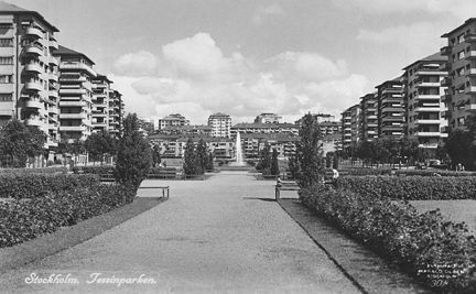 Tessinparken sedd mot nordost. Nybyggda hus i Gärdesstaden