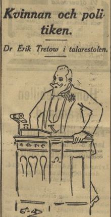 Landsorganisationen för kvinnans politiska rösträtt bildades år 1903. Här en affisch som gör reklam för ett möte år 1916. Det bjuds på tal av föreningens ordförande, Signe Bergman och Oscar Montelius. Det framkommer inte hur engagerad Oscar Montelius var när det gäller kvinnlig rösträtt, men han var ledamot i Kungliga Vetenskapsakademien, där själva mötet hölls.