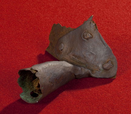 Bilden visar ett medeltida grytskaft av metall från Helgeandsholmen.