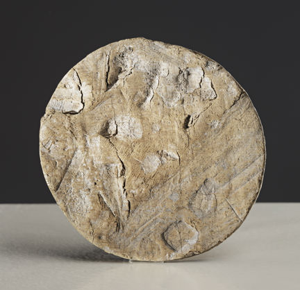 Föremålet är ca 10 cm i diameter och var tidigare utställd på Medeltidsmuseet.