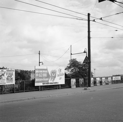 Valpropaganda för socialdemokraterna inför kommunalvalet 1954. "Här kan byggas 62000 nya bostäder."