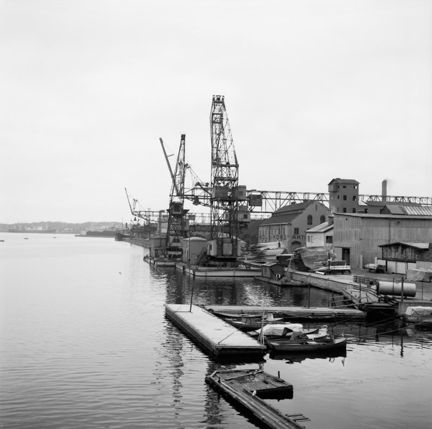 Värtahamnen vid Lidingöbron år 1953