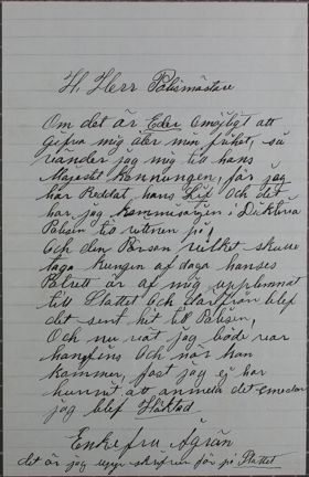 Bland polisens inkomna handlingar från 1881 finns ett brev den häktade änkan Ågren till polismästaren: