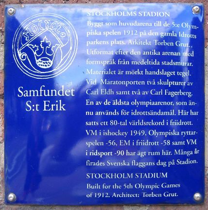 Byggt som huvudarena till de 5:e Olympiska spelen 1912 på den gamla Idrottsparkens plats. Arkitekt Torben Grut. Utformat efter den antika arenan med formspråk från medeltida stadsmurar. Materialet är mörkt handslaget tegel. Vid Maratonporten två skulpturer av Carl Eldh samt två av Carl Fagerberg. En av de äldsta olympiaarenor, som ännu används för idrottsändamål. Här har satts ett 80-tal världsrekord i friidrott. VM i ishockey 1949, Olympiska ryttarspelen -56, EM i friidrott – 58 samt VM i ridsport -90 har ägt rum här. Många år firades Svenska flaggans dag på Stadion.