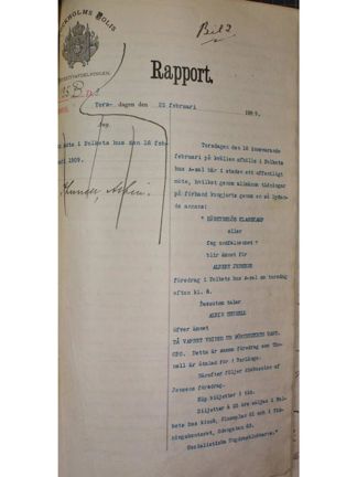 Polisrapport om ungsocialisten Albin Thunells tal ”Då vapnet vrides ur förtryckets hand” 1909