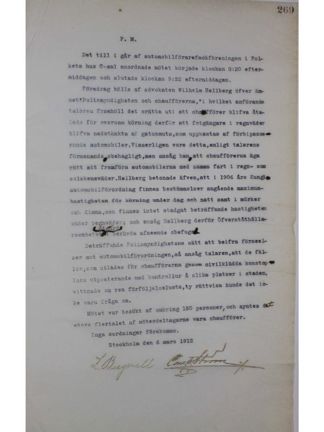 Den 5 mars 1912 anordnade automobilförarnas eget fackförbund i Stockholm en föreläsning på Folkets Hus, med titeln "Polismyndigheten och chaufförerna", där denna olägenhet och många andra som drabbade huvudstadens yrkeschaufförer dryftades.