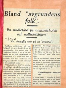 "Vill man se en profkarta på brottsliga och sedligt förfallna existenser, som utgöra en ständig fara för det allmänna lugnet i Sveriges hufvudstad /.../ så bör man passa på och vara närvarande någon tidig sommarmorgon, då polisen företager en af sina /.../ razzior för att uppsöka och hopsamla /.../ det slags existenser, manliga och kvinnliga hvilka allmänt äro kända under benämningen uteliggare."