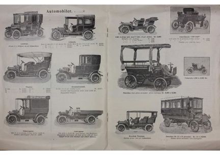 Utdraget visar på de olika automobilmodeller firman erbjöd sin kundkrets.