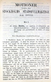 Alma Hedin (1876-1958) satt i Stadsfullmäktige 1911 till 1917 och invaldes av Allmänna valmansförbundet. Du kan läsa några av hennes motioner via länkarna till höger. Hon var syster till samtidens kanske mest berömda svensk, upptäcktsresanden Sven Hedin.