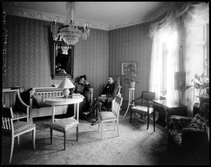 Interiör med författare Oscar Levertin och fru Ebba i hemmet på Karlaplan 2, 4 tr (tornrummet)