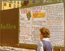 En annan organisation kallad ”Folkets forum” – bestående av De förenade FNL-grupperna, Stockholms Afrikagrupp, Vänsterpartiet kommunisterna, Svenska kvinnors vänsterförbund, Palestinagruppen i Stockholm, Eritreagruppen, Antidroggruppen, Alternativ stad, Stadsmiljögruppen, Arbetsgruppen Front mot avfolkningen, Energigruppen i Symbios, Projektgruppen Kapitalism och miljöförstöring, Kommunistiska förbundet marxist-leninisterna, Förbundet kommunist, Revolutionära marxistiska förbundet, Socialistiska läkare, Socialistiska tekniker, Moungruppen i Norge, Svenk-kinesiska vänskapsförbundet, UBV (Latinamerikagrupperna), Pow-Wow-gruppen och National Indian Brotherhood – och som var politiskt aktiva engagerade sig också i konferensen med föredrag och programpunkter i ABF-huset.
