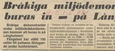 I juni 1972 anordnade FN en tvåveckors miljövårdskonferens i Stockholm. För att ta hand om alla tillresande ungdomar som engagerat sig i miljörörelsen anordnade kommunen ett tältläger på Skarpnäcks flygfält.