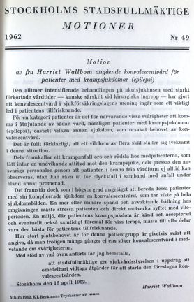 Motion om vilohem för epileptiker - stadsfullmäktige 1962