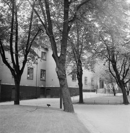 Kvarteret Klockstället inifrån från kyrkogården vid Klara kyrka