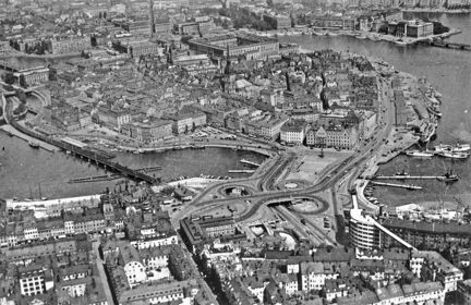 Flygfoto över Slussen 1936