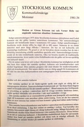 Motion angående samernas situation i Stockholm 1981