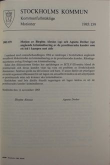 Den kungliga prostitutionskommittén kom i sitt yttrande från 1910 fram till att reglementeringen inte har särskilt mycket effekt på spridningen av smittosamma könssjukdomar. Motionärerna menar därför att Stockholms stadsfullmäktige inte längre bör upprätthålla detta system med anslag på 30 000 kr årligen. Läs om kommitténs slutsatser här
