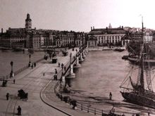 Bild från häftet "Vyer från Stockholm" utgivet 1899. Bilden föreställer "Karl Johans Torg, Hissen och Mosebacke".