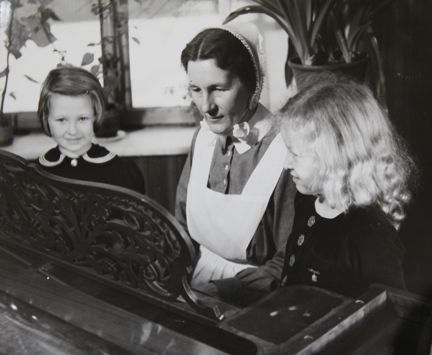 I mitten syns föreståndaren och diakonissan Rut Hedin och till vänster om henne flickan Ingrid Viola Eriksson.