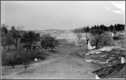 Utsikt från taket av Stora Ängby gård norrut mot Ängby småstugeområde och Beckomberga sjukhus