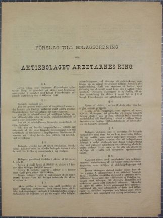 Förslag till Bolagsordning för Aktiebolaget Arbetarnes Ring
