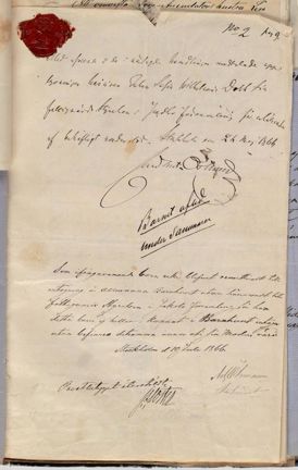Som ifrågavarande barn icke blifvit remitteradt till intagning å Allmänna Barnhuset utan hänvisadt till fattigvårds Styrelsen i Jakobs församling, så har detta barn ej heller kunnat i Barnhuset intagas utan befinnes detsamma ännu uti sin Moders vård. Stockholm d 10 juli 1866.