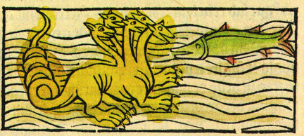 Drottningfisken svarade: ”Detta kan inte ske, ty det passar sig inte. Det står nämligen i Syraks bok, kapitel 13: Vart levande väsen älskar sin like, och var människa den som står henne närmast. Alla varelser sluta sig samman efter sina släkten: så bör ock en man hålla sig till sin like. Eftersom du inte är av mitt släkte, kan du alltså aldrig förenas med mig”. Hydran vände tillbaka utskrattad och besviken och sade: ”Skamsen och försmådd jag tror att alla min glädje jag förlorat”.