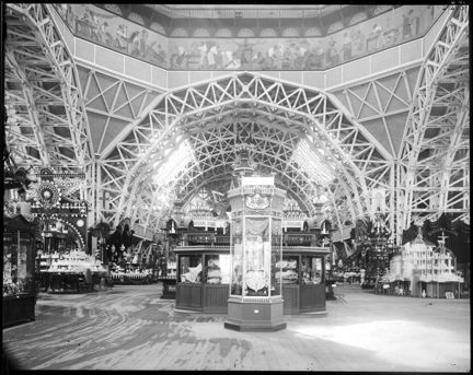 Interiör från industrihallen på 1897 års Allmänna konst- och industriutställning på Djurgården
