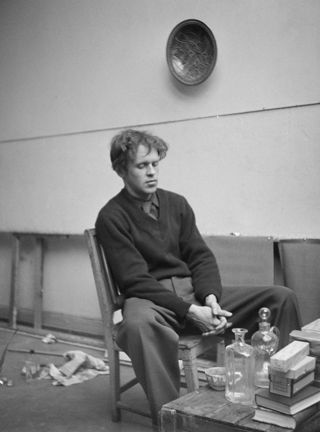 Lasse Andreasson var konstnär och framförallt målare. Här sitter han i sin ateljé som ligger under takåsarna. Han gick vid den tiden på Konstfackskolan som låg i Klara kvarteren. Bilden måste vara tagen ca 1945.