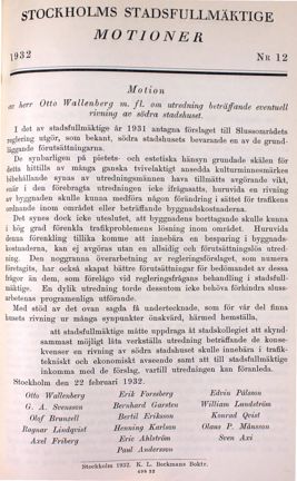 SE/SSA/ 0566B Kommunstyrelsen/Stadskansliet A1B Kommunfullmäktiges/Motion 12 år 1932