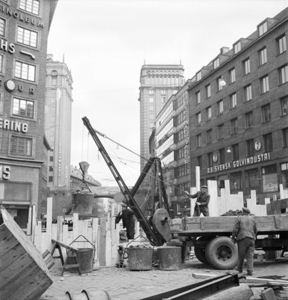 Tunnelbanebygget i korsningen Kungsgatan - Sveavägen