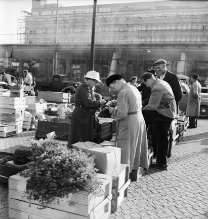 Grönsaksförsäljning på Klaratorget år 1951