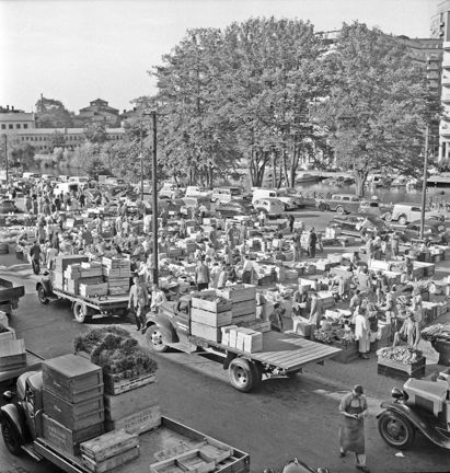 Grönsaksförsäljning på Klaratorget år 1951