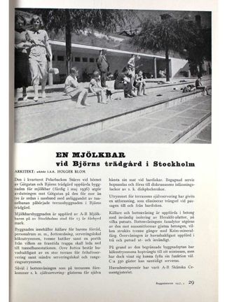 Vid mitten av 1930-talet öppnade företaget A-B Mjölkbaren upp en mjölkbar vid Björns Trädgård. Här invid hittas en kort artikel, med bilder och planskiss över mjölkbaren, ifrån tidskriften Byggmästaren 1937.