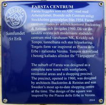 Här kan du få en uppfattning om visionen som låg bakom bygget av Farsta Centrum. Hur mycket stämmer överens med det nutida Farsta Centrum? Och var ville man placera träd, telefonkiosker och annonspelare?