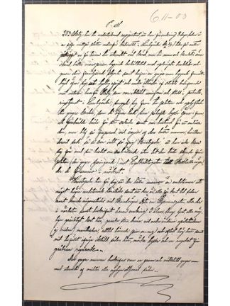 ”283 Watz har till undertecknad rapporterat, att han för omkring 8 sedan å en soffa midtpå slätten nedanför kabinettet i Humlegården kl 3/4 1 tiden på natten påträffat en för honom till utseendet väl känd, men till namn och karaktär ännu okänd, bättre mansperson, liggande bakåtlutad med upknäpta benkläder och genom den framlysande skjorta samt hafva en yngre man liggande framåtböjd öfver sig, uti tydligt afsigt och under åtbörder af otukts bedrivande mot naturen, hvarför Watz, som var iklädd uniform och stadd i partulleringstjenst i Humlegården, smygde sig fram till platsen och uplyftade den yngre karlen, som då äfven hade sina påhafda byxor öpna i fram, och förebådde båda för sitt oskick samt var bestämd för att anhälla dem, men blef så fraperad vid åsynen af den bättre mannen, hvilken dervid sade, ”så var inte så ifrig Konstapeln”, att han inte kom sig före med sitt beslut om anhållande utan lät dem båda skynda från platsen, (den yngre springande) mot Engelbrektsgatan till Walhallavägen, der de försvunno i mörkret.