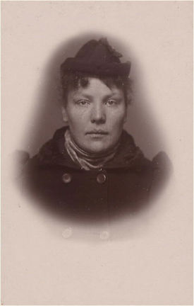 Det här fotografiet är taget 1894 hos polisen i Stockholm. Det föreställer Signe Wilhelmina Wiberg när hon frigavs från häktet. Hon hade ännu en gång suttit inne för att hon varit ”utan laga försvar” – alltså hemlös – och prostituerat sig för att ha något att leva av. På bilden är hon 27 år gammal.