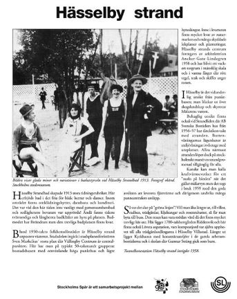 Texten kommer från en informationstavla som var placerad på Hässelby Strands tunnelbanestation under kulturhuvudstadsåret 1998. Den togs fram i projektet "Stockholms spår" i samarbete med Stockholms stadsmuseum, SL (Storstockholms lokaltrafik) och Kulturhuvudstadsåret Stockholm 98.