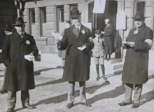 En kortfattad påminnelse från Allmänna valmansförbundet till potentiella väljare att gå och rösta. Från riksdagsvalet 1911. I valet erhöll partiet, under sin dåvarande partiledare Gustaf Fredrik Östberg, 31,3% procent av rösterna och blev Sveriges näst största parti efter liberalerna.