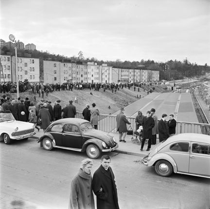 Tunnelbana 2, eller Röda linjen som vi säger idag, invigdes 5/4 1964. Invigning skedde vid Mariatorget och sedan körde invigningstågen först till Fruängen, återvände sedan till Liljeholmen och tog andra spåret till Örnsberg. Örnsberg var vid denna tid slutstation på linje 13.